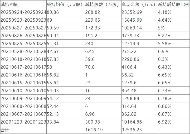 长川科技实际控制人5天套现5.35亿元,此前累计套现9亿元。